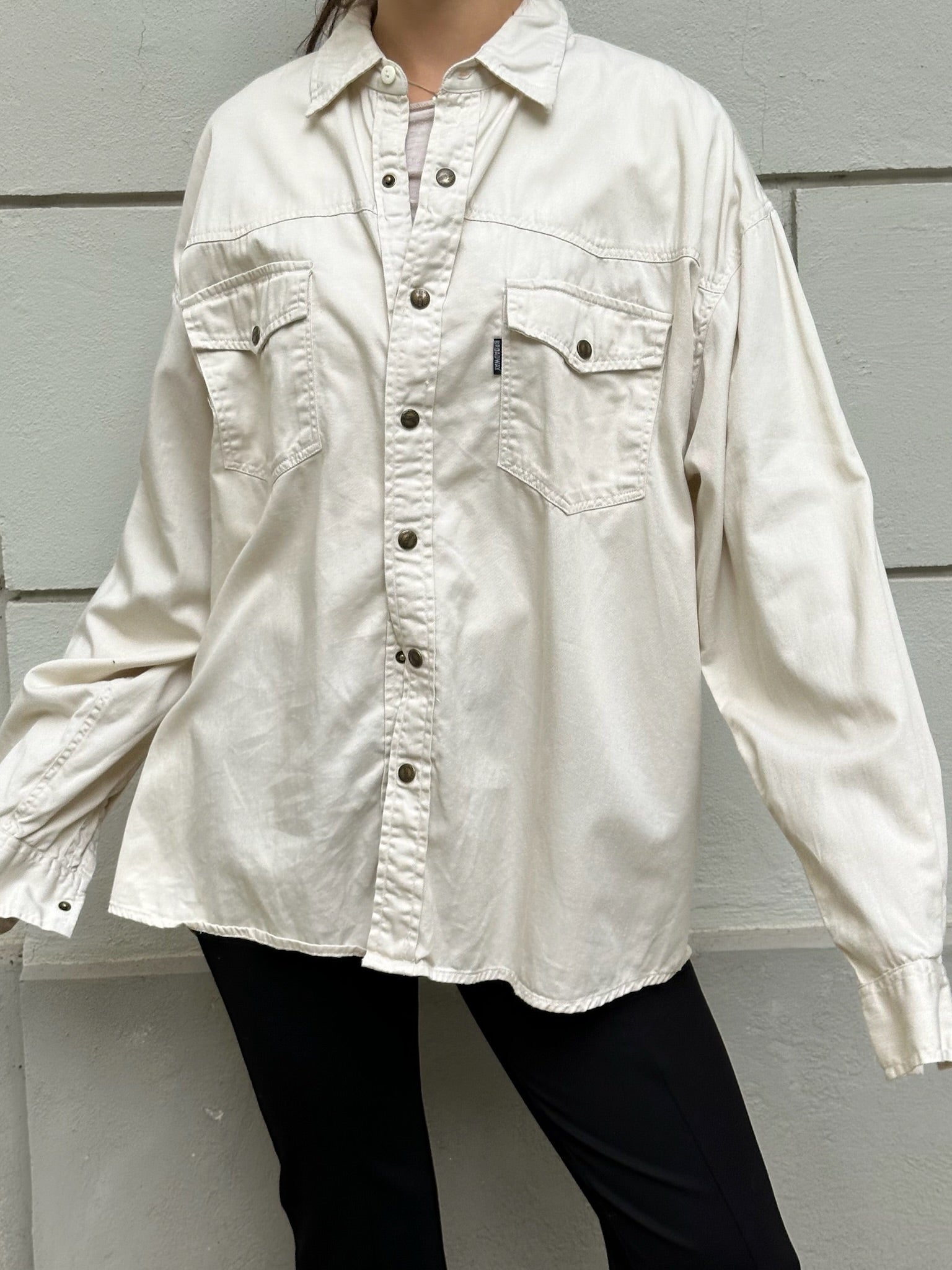 Vintage 100% Cotton Off White Button Down Shirt L/XL