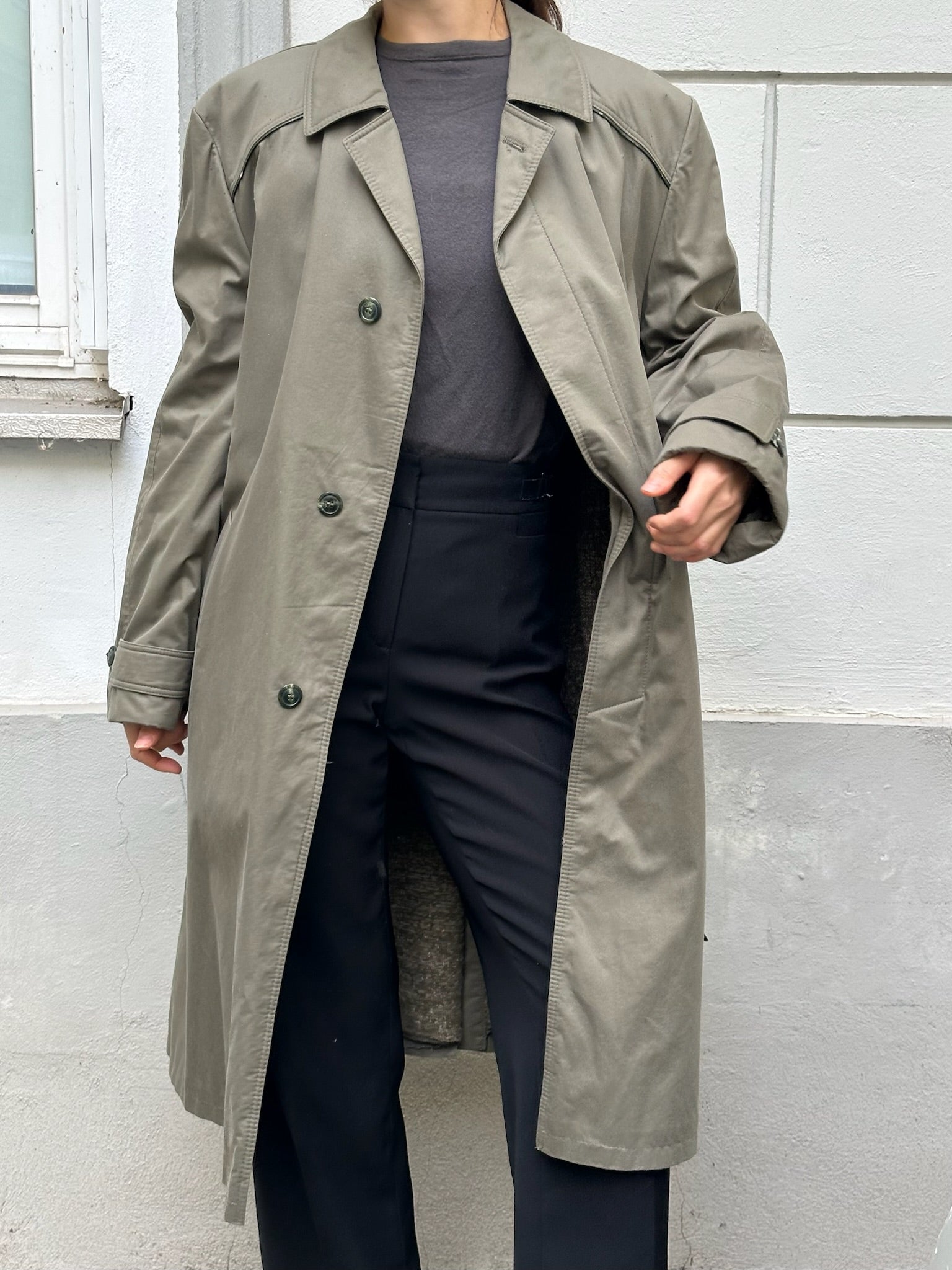 Simple and minimal trench coat with a very warm lining inside that is knitted to perfection. Warm trench coat that is also great for layering lots underneath. Timeless beauty.