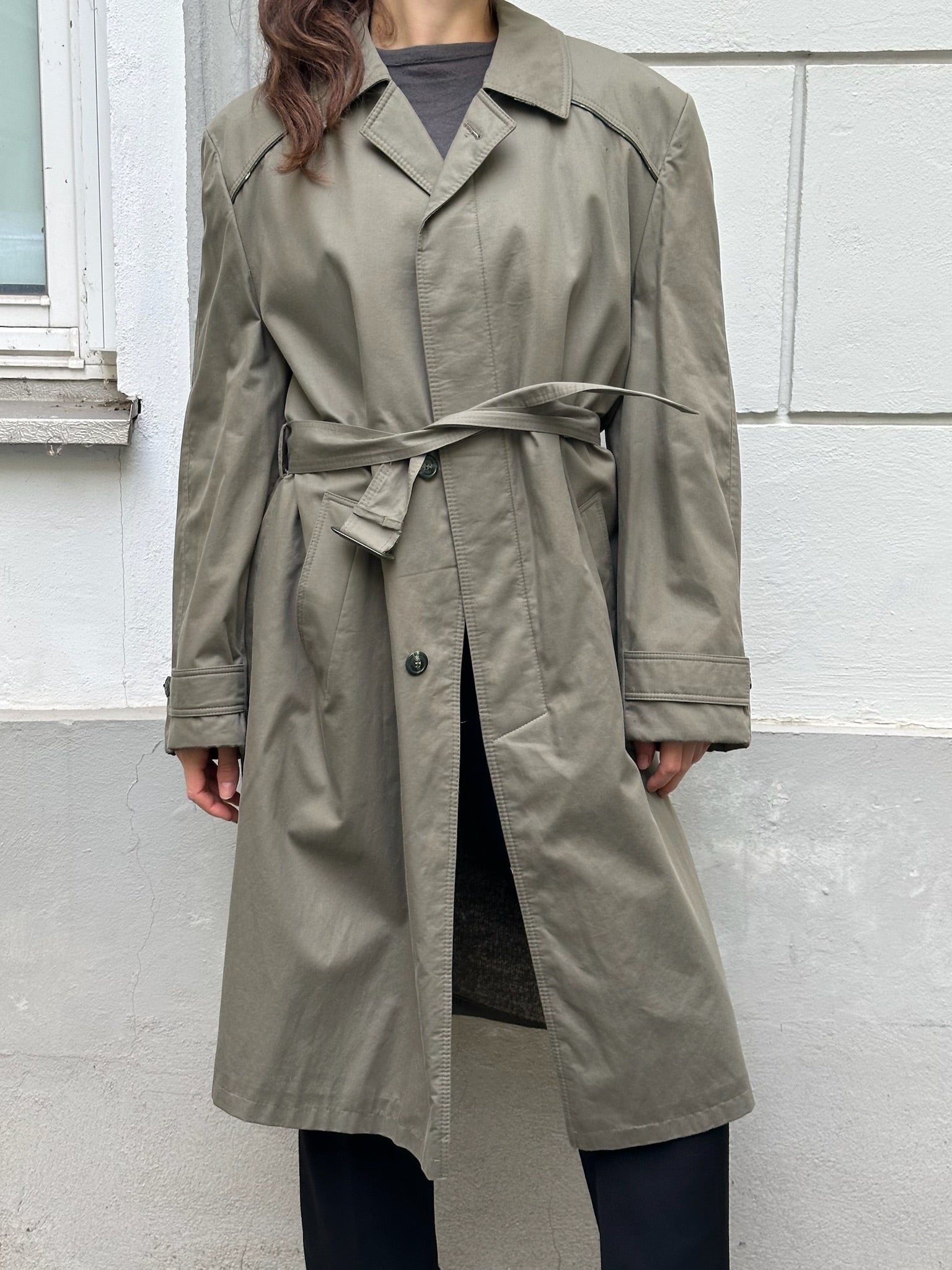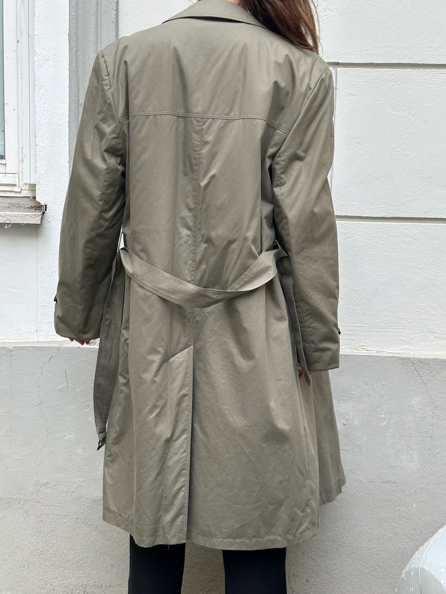Vintage 100% Cotton Khaki Trench Coat With Warm Lining M