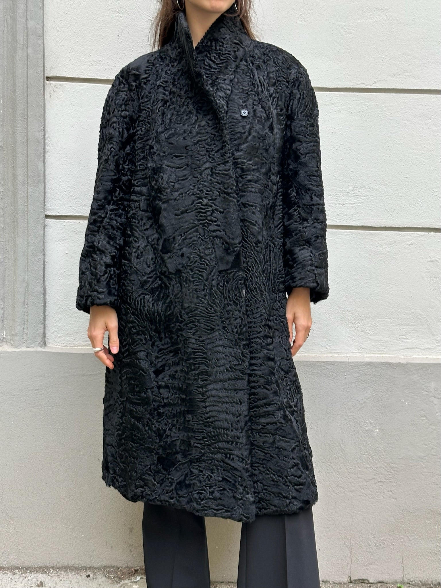 Vintage 100% Persian Lamb Shearling Black Coat M