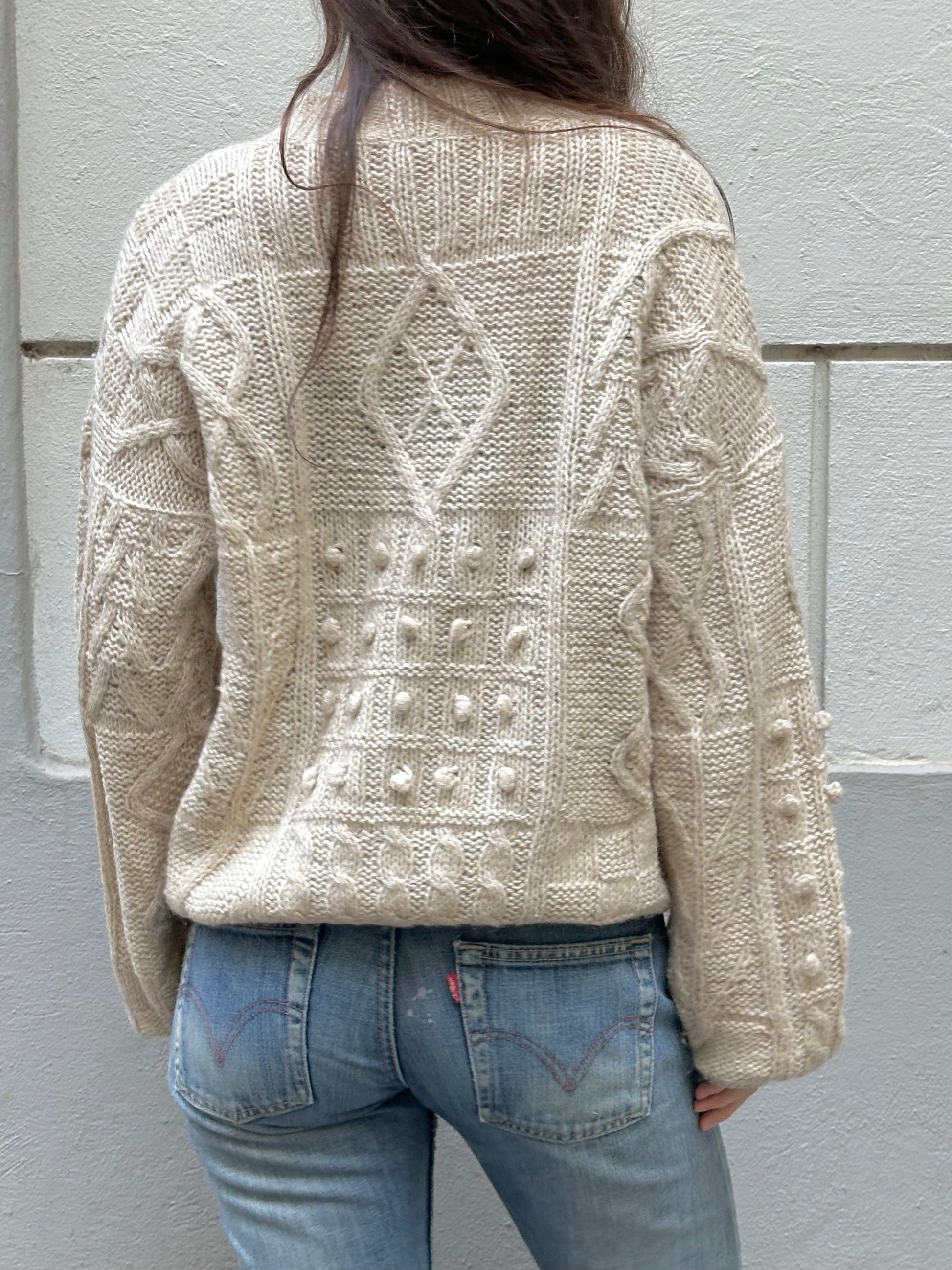 Vintage 100% Wool Cable Knit Cream Sweater L