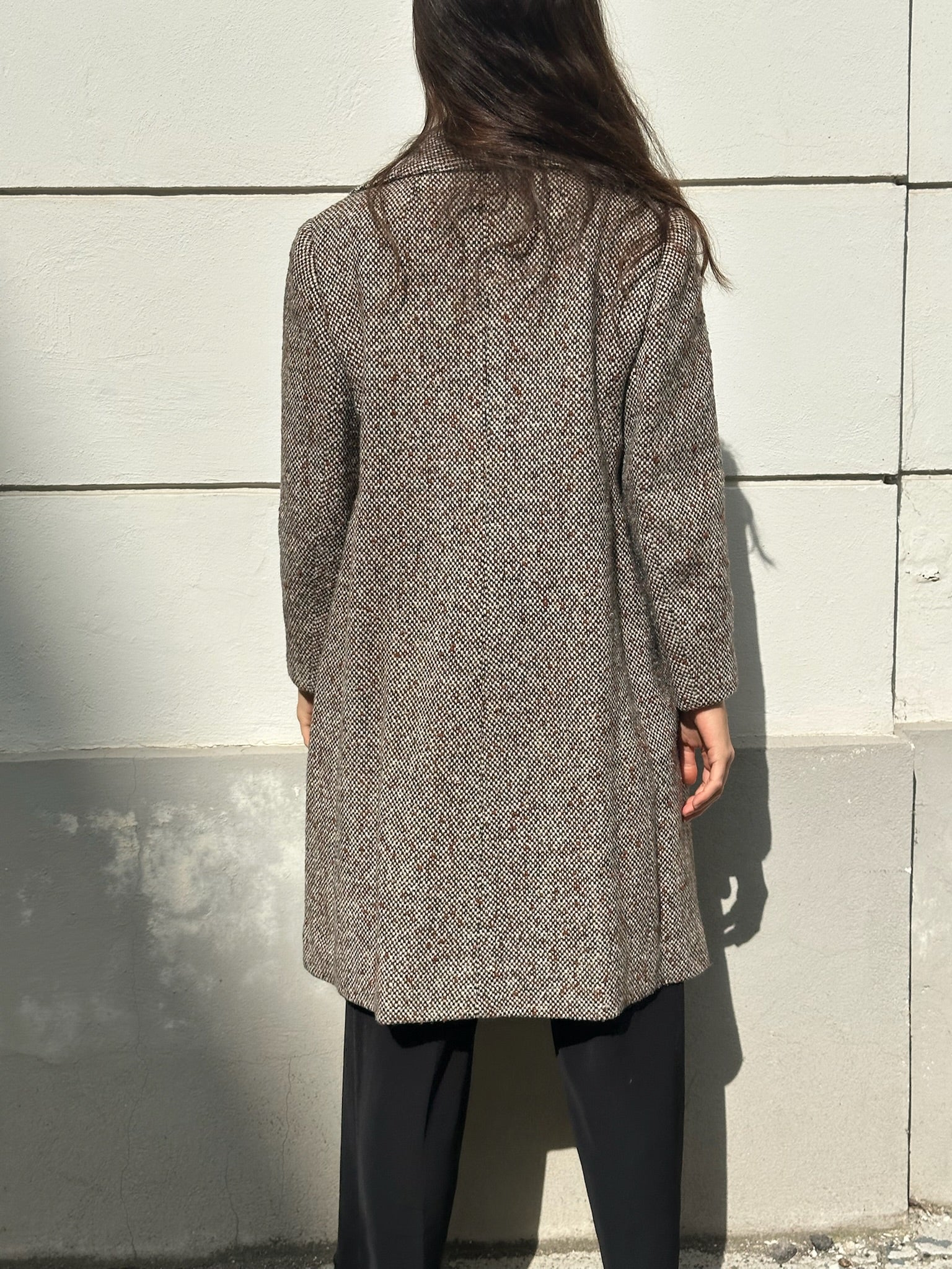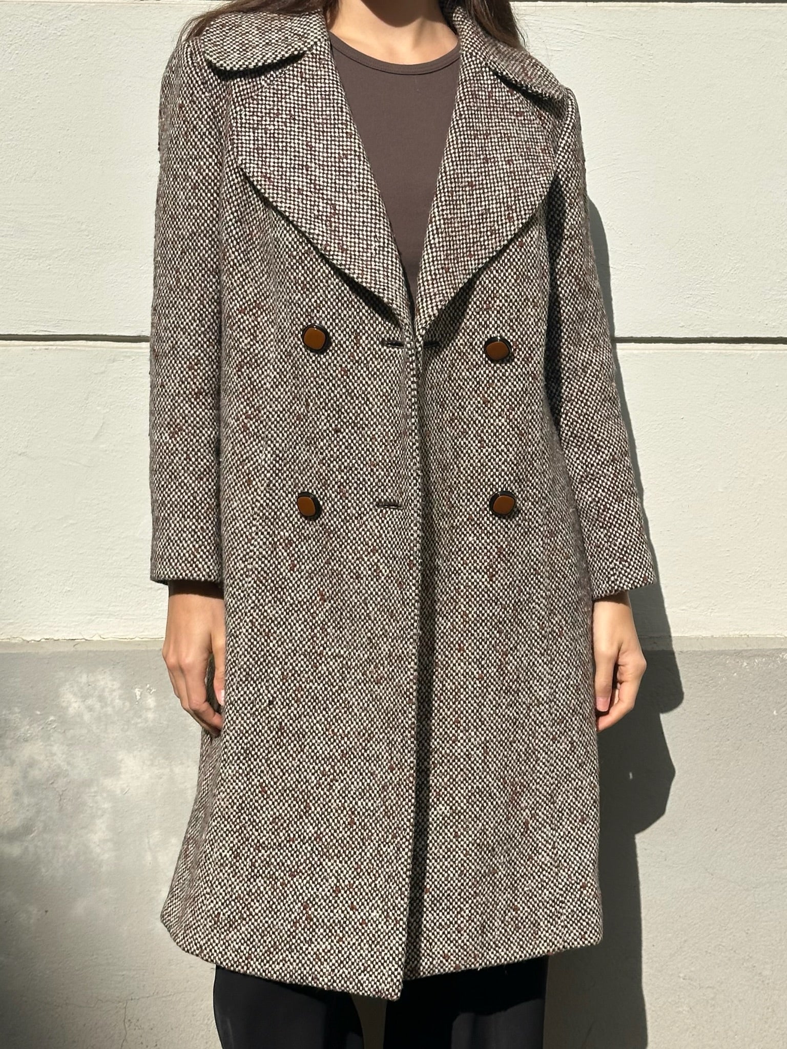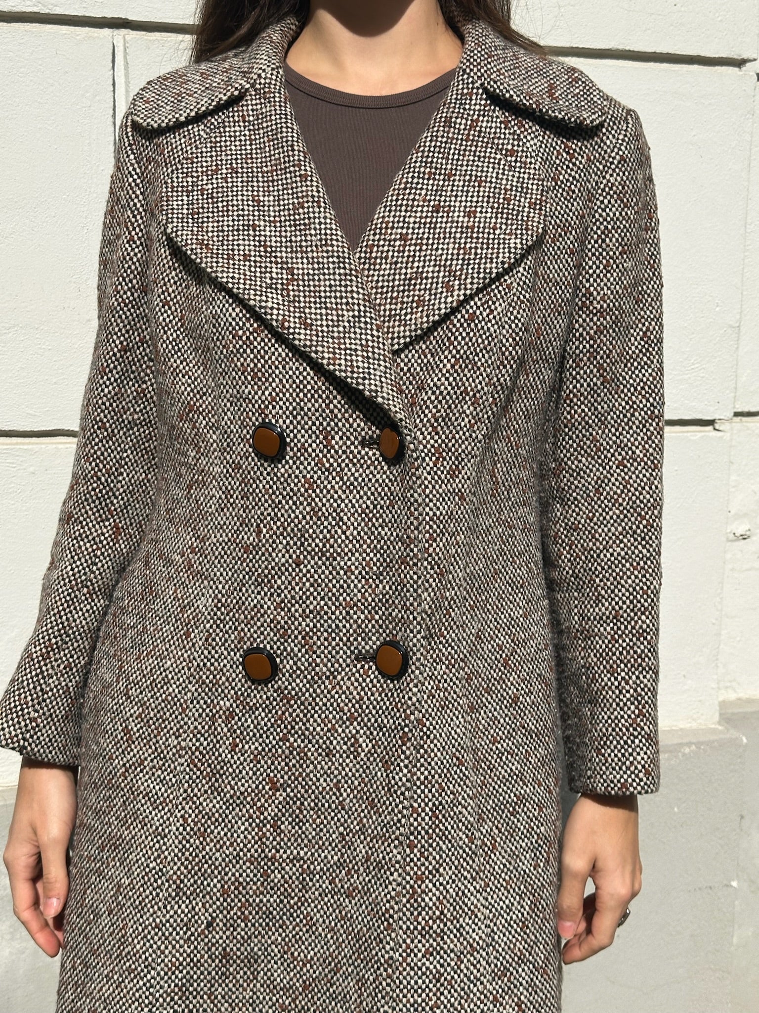 Vintage 100% Wool Tweed Coat Brown/Gray M
