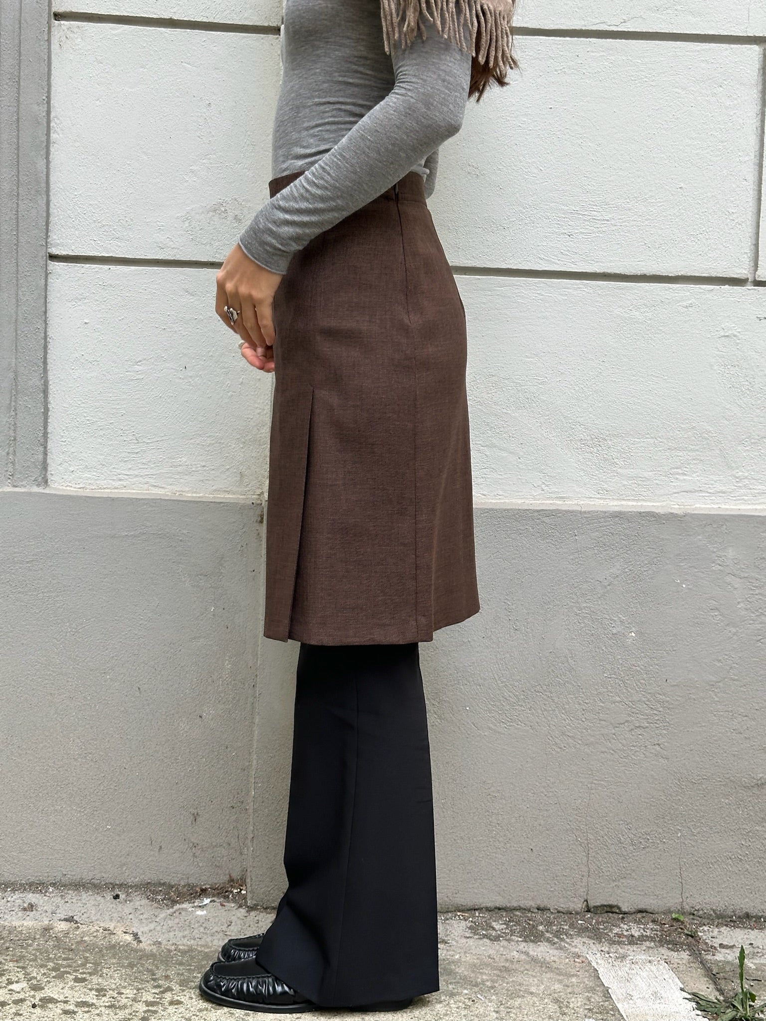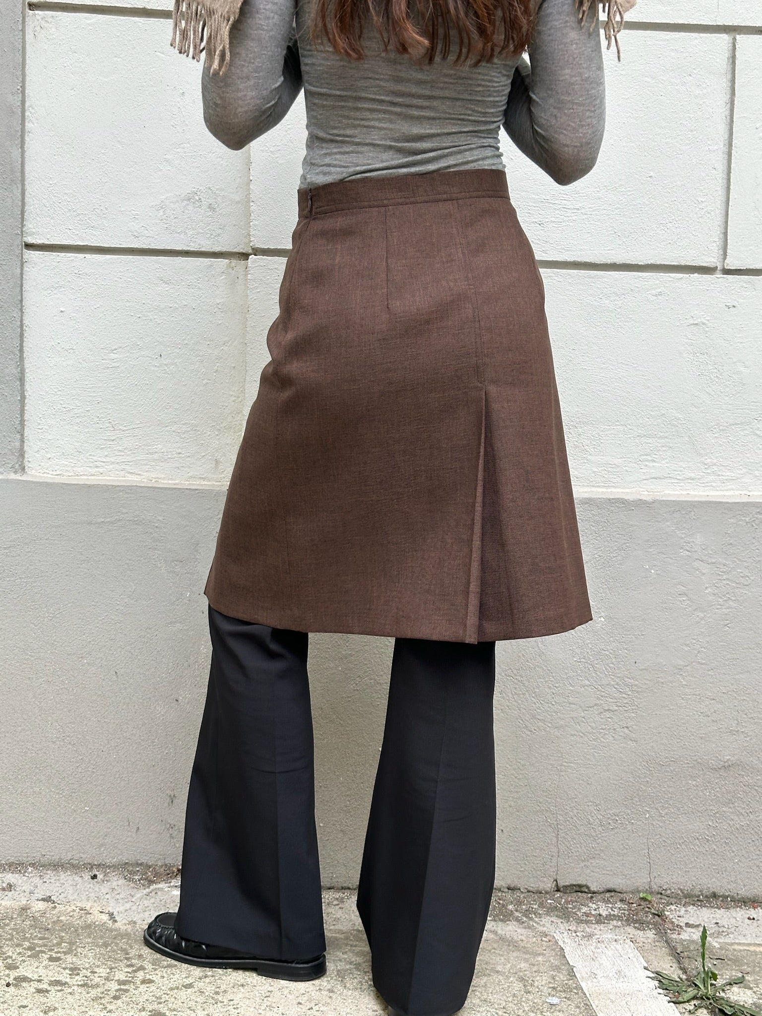 Vintage 90's Brown Pleated Slit Knee Length Skirt S