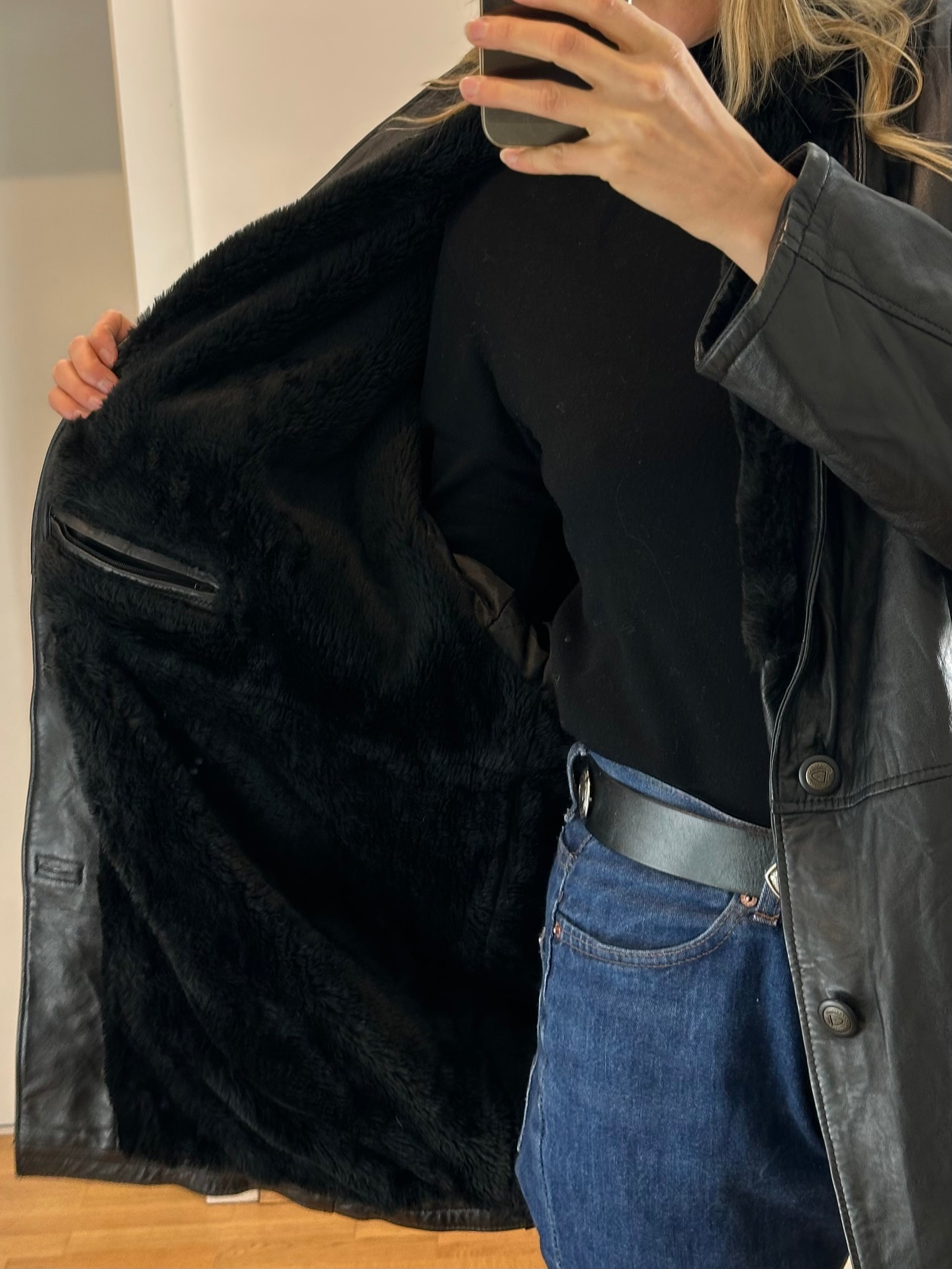 LOOOVE!! It’s such a cool and timeless vintage piece. Genuine leather but quite light weight, prefect late winter/ spring jacket.