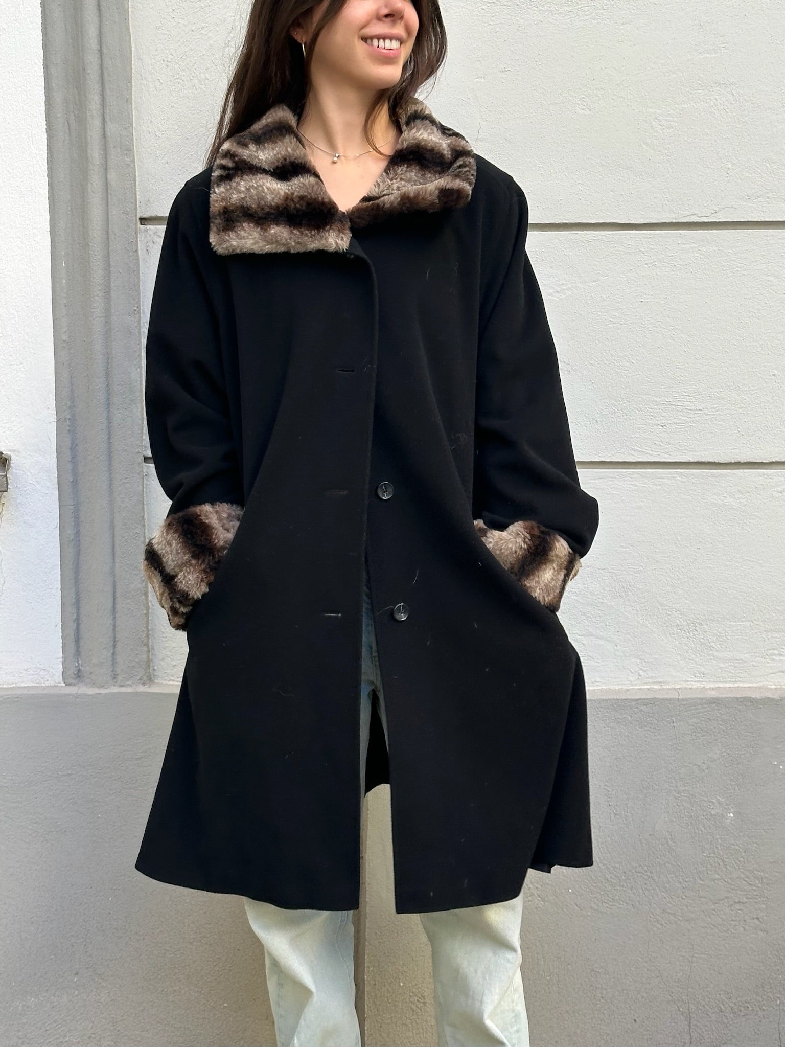 Foxaaay ladaaaaaay. This faux fur trim coat is super warm and has lots of space for layering underneath. Beautiful piece that is elegant and perfect for going out and looking snaaaazzzy.