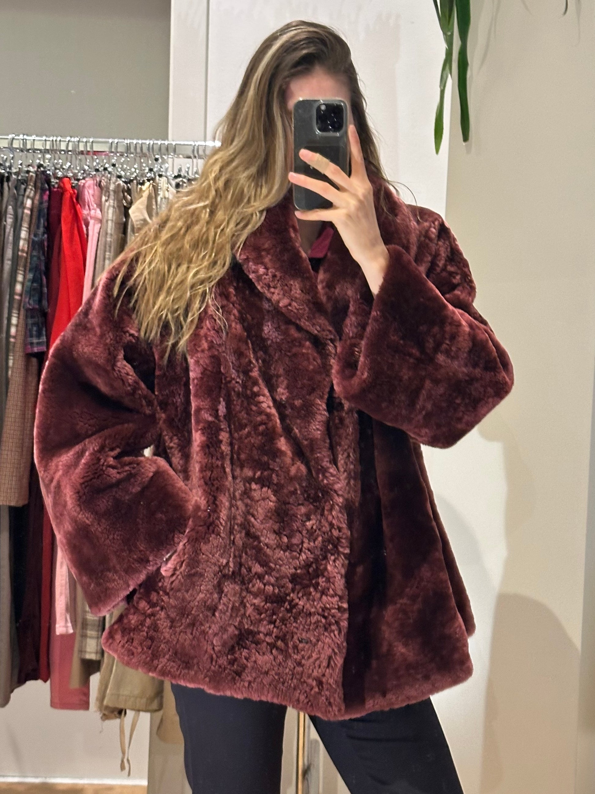 Vintage Genuine Shearling Bordeaux Red Teddy Jacket M/L