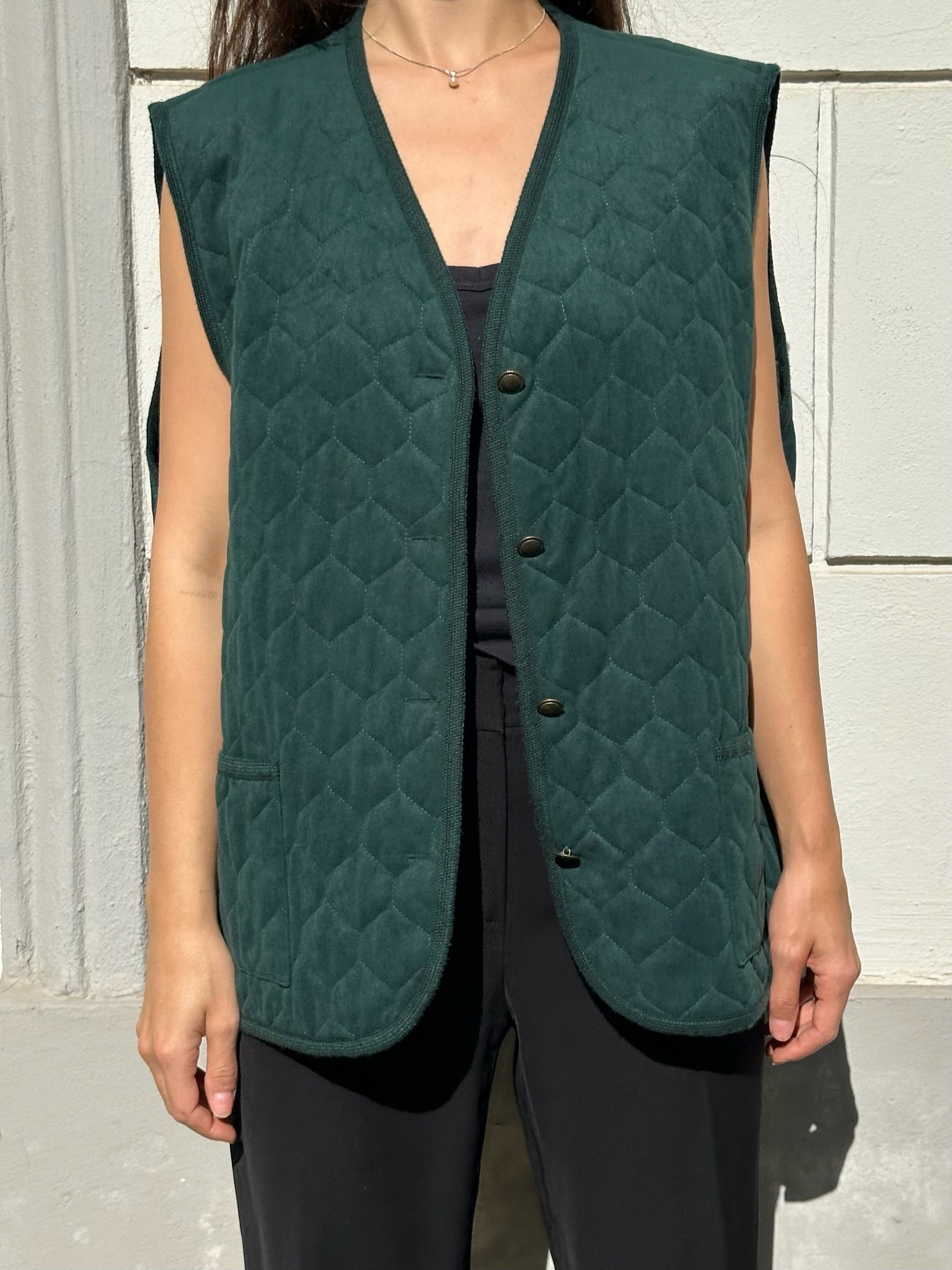 Vintage Forest Green Quilted Vest/Gilet L/XL