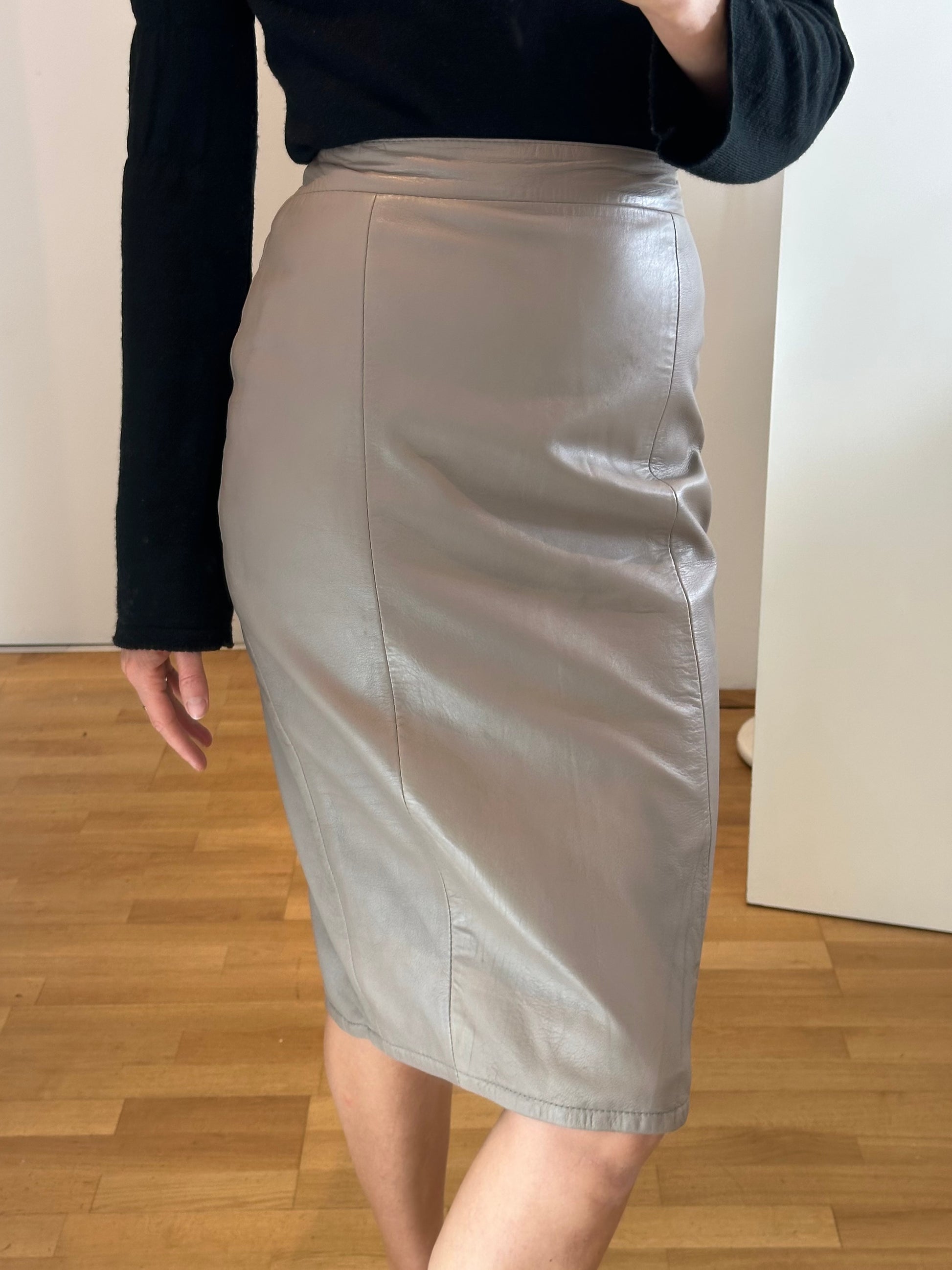 Vintage Gray Leather Midi Skirt S