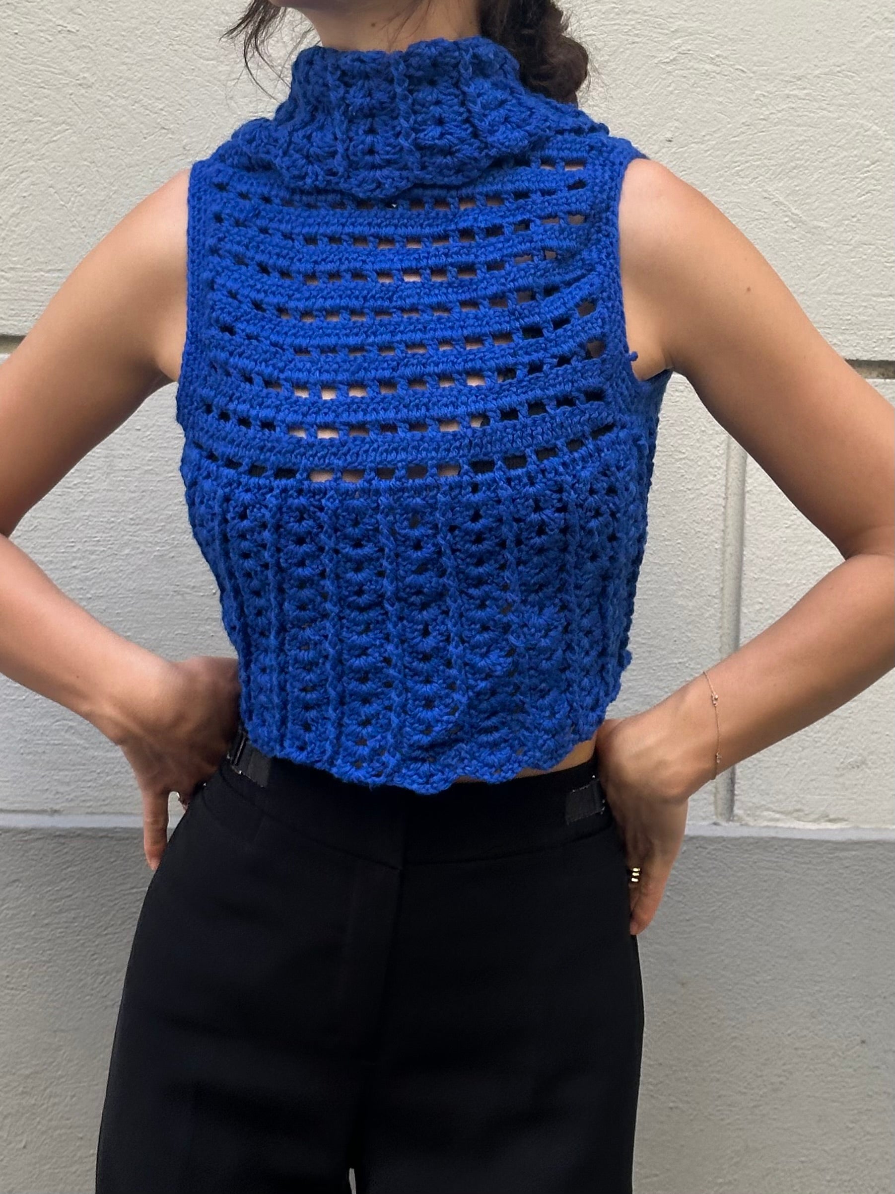Vintage Royal Blue Handmade Knitted Crop Cardigan Bolero XS/S