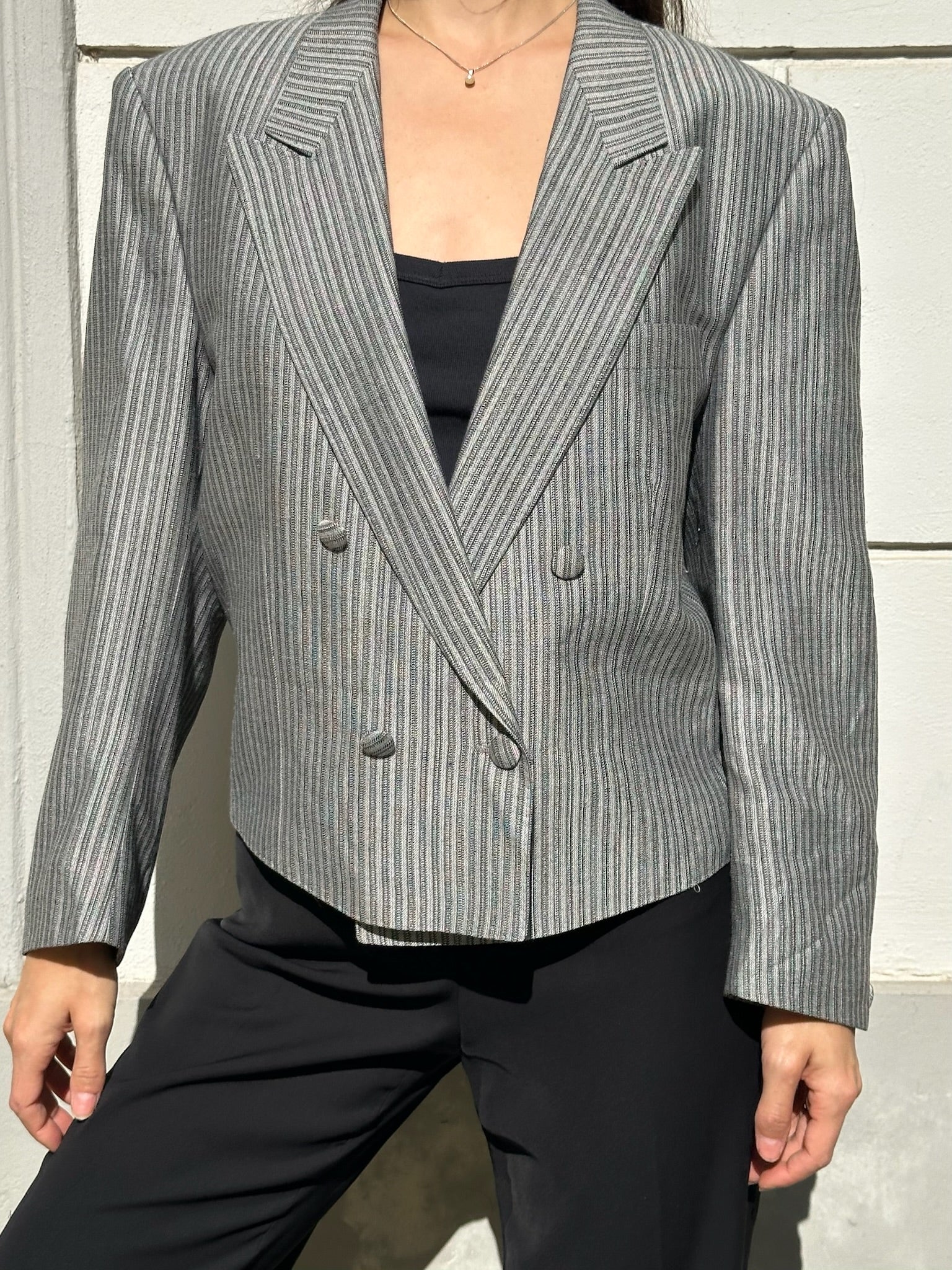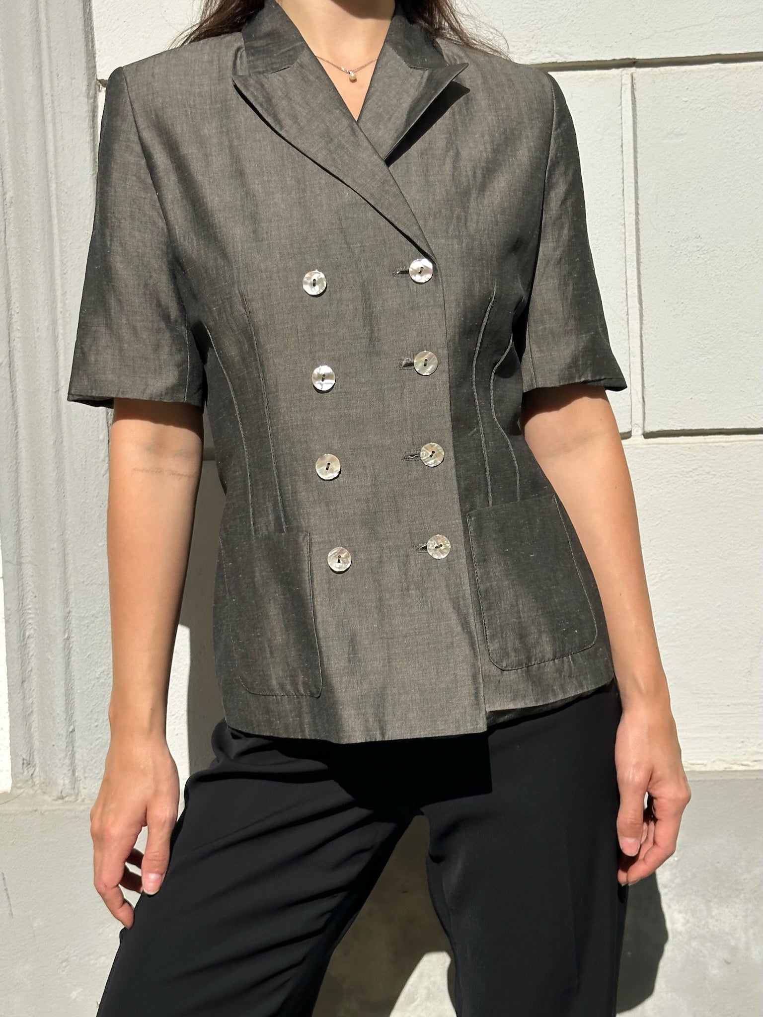 Vintage Viscose/Linen Blend Khaki Blazer Style Top S