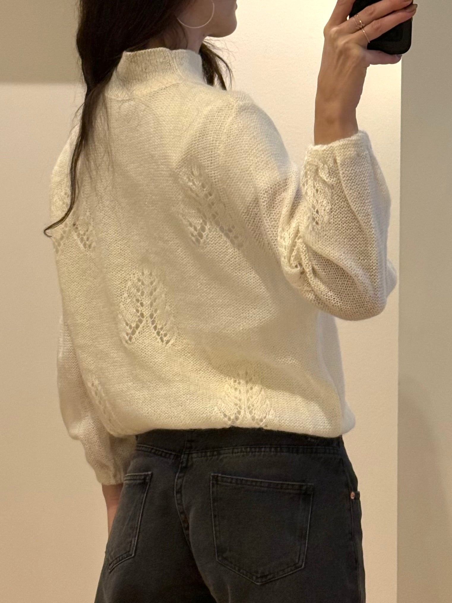 Wow! Creamy & dreamy white mohair sweater that is as light as a feather and looks luxurious. The fit is simple and timeless.