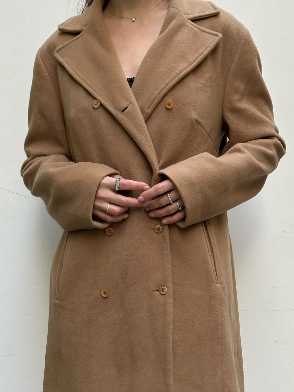 LOVE Super classy and cool double breasted wool coat in a camel shade. Lightweight yet very warm <3
